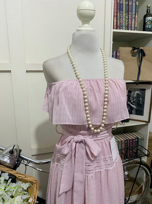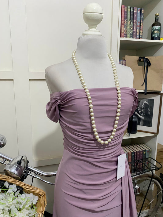 Marifer, vestido largo ajustado púrpura polvoriento hombros descubiertos manga caída
