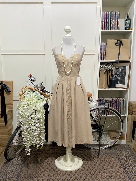 Sarah, vestido midi línea A albaricoque flores tirantes
