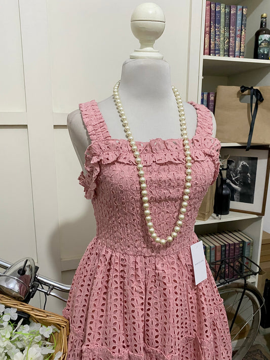 Becky, vestido corto línea A rosa tirantes