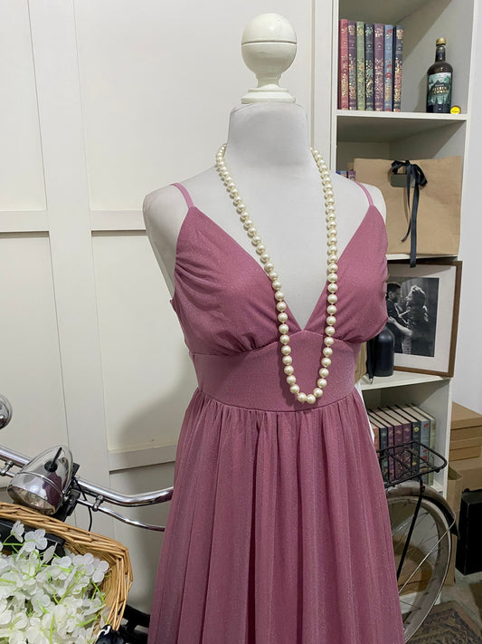 Gissela, vestido largo línea A rosa vieja tirantes
