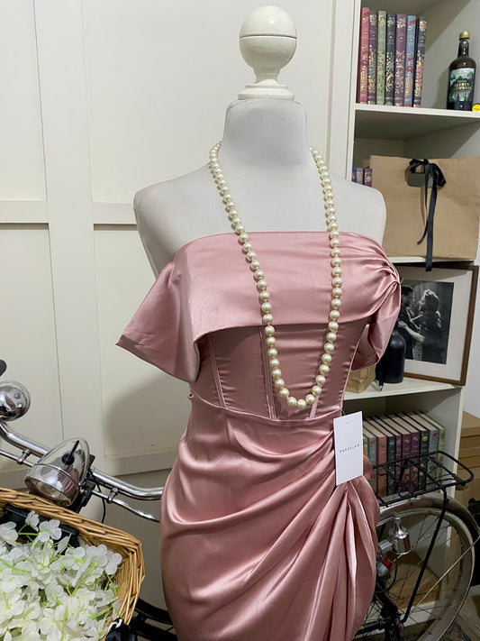 Ramona, vestido midi ajustado rosa vieja hombros descubiertos manga caída